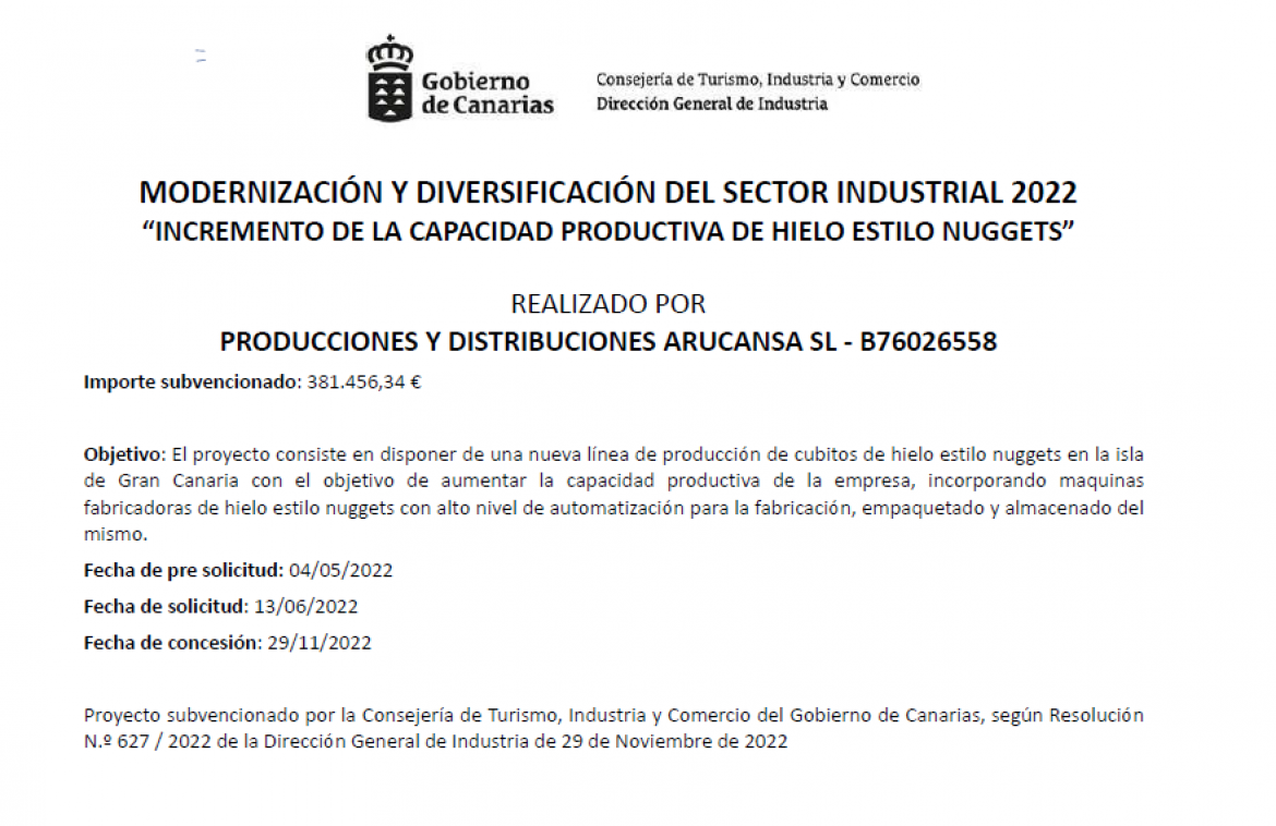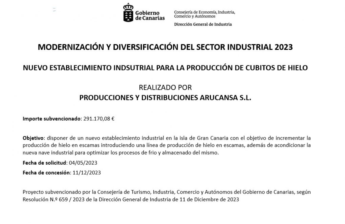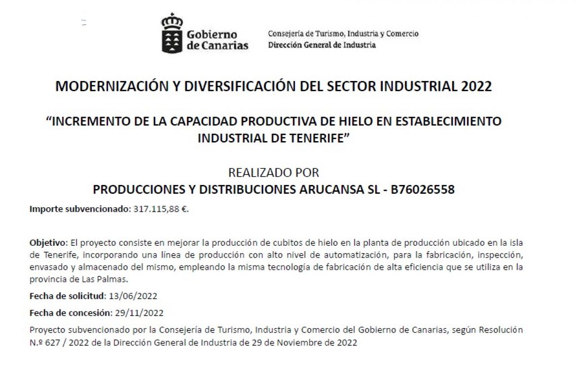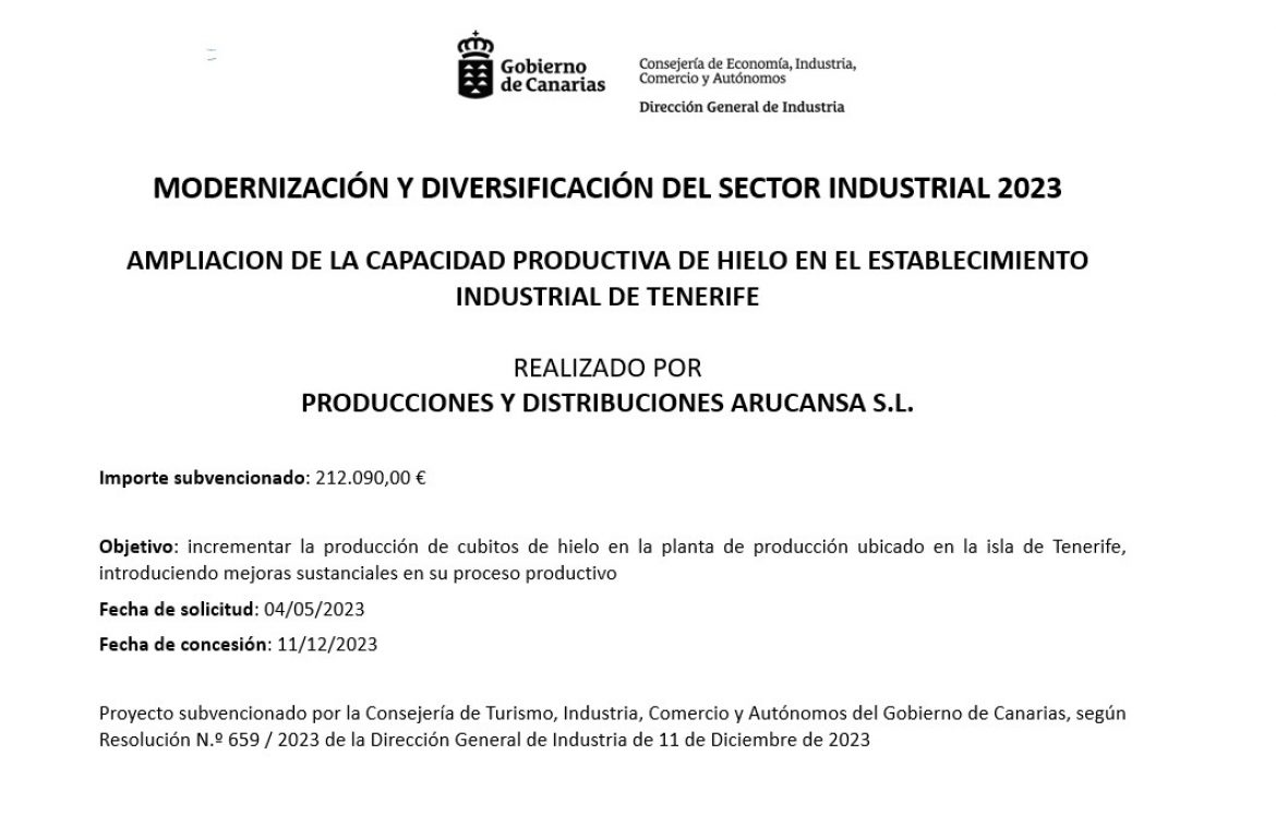 Producciones y Distribuciones Arucansa ofrece servicios desde la fabricación hasta la distribución de cubos de hielo,